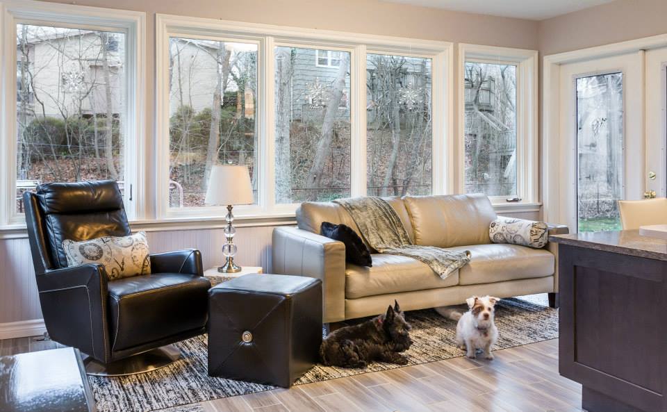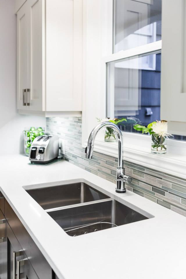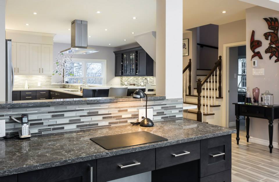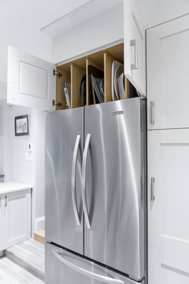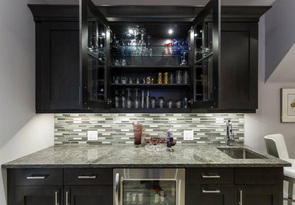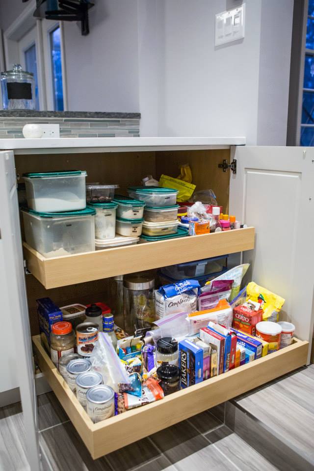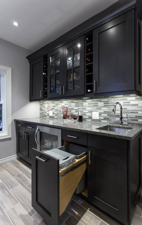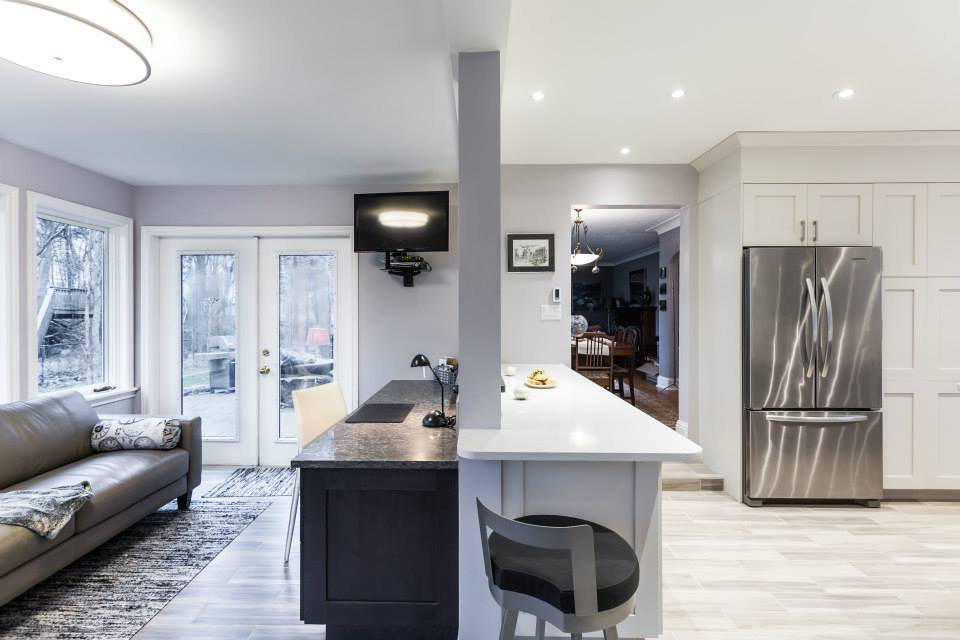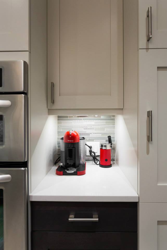 This was a total transformation, Mom had a houseful of boys, all in university and all bringing home friends, a busy social life that included her entertaining weekly and no storage space. We took 3 rooms, knocked down walls and made one great space! We included tones of storage for cooking with a bake centre, a bar for entertaining and a desk to keep all the household financials in check. Overall this space is worthy of anyone’s dream kitchen! – Photos by Randal Tomada.