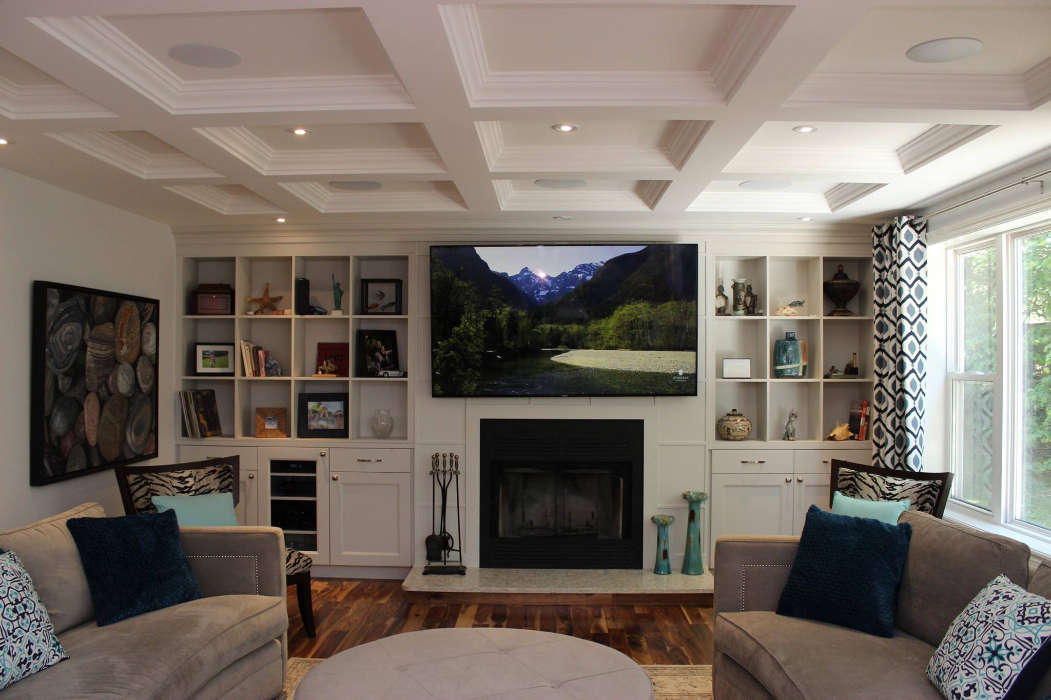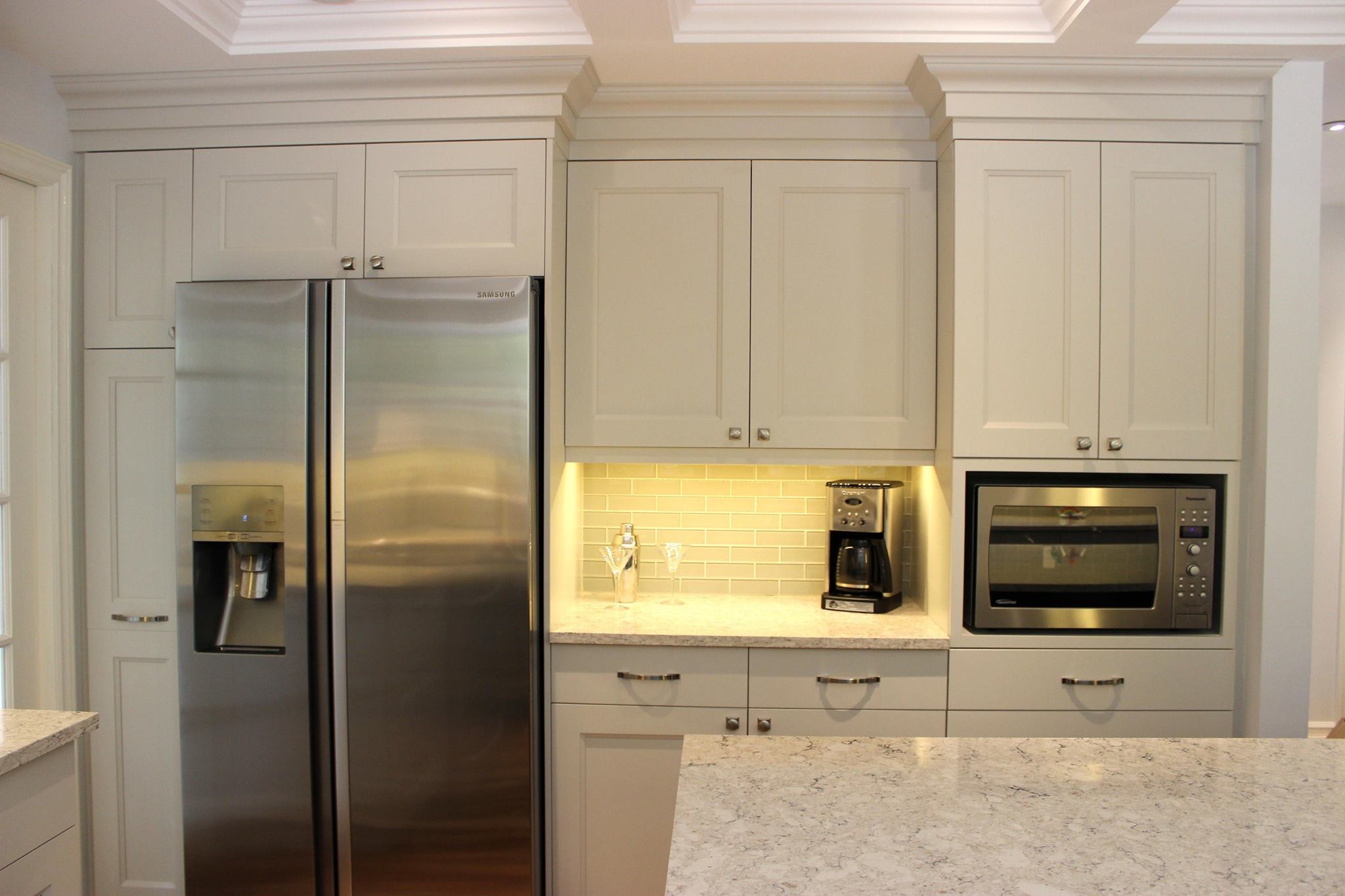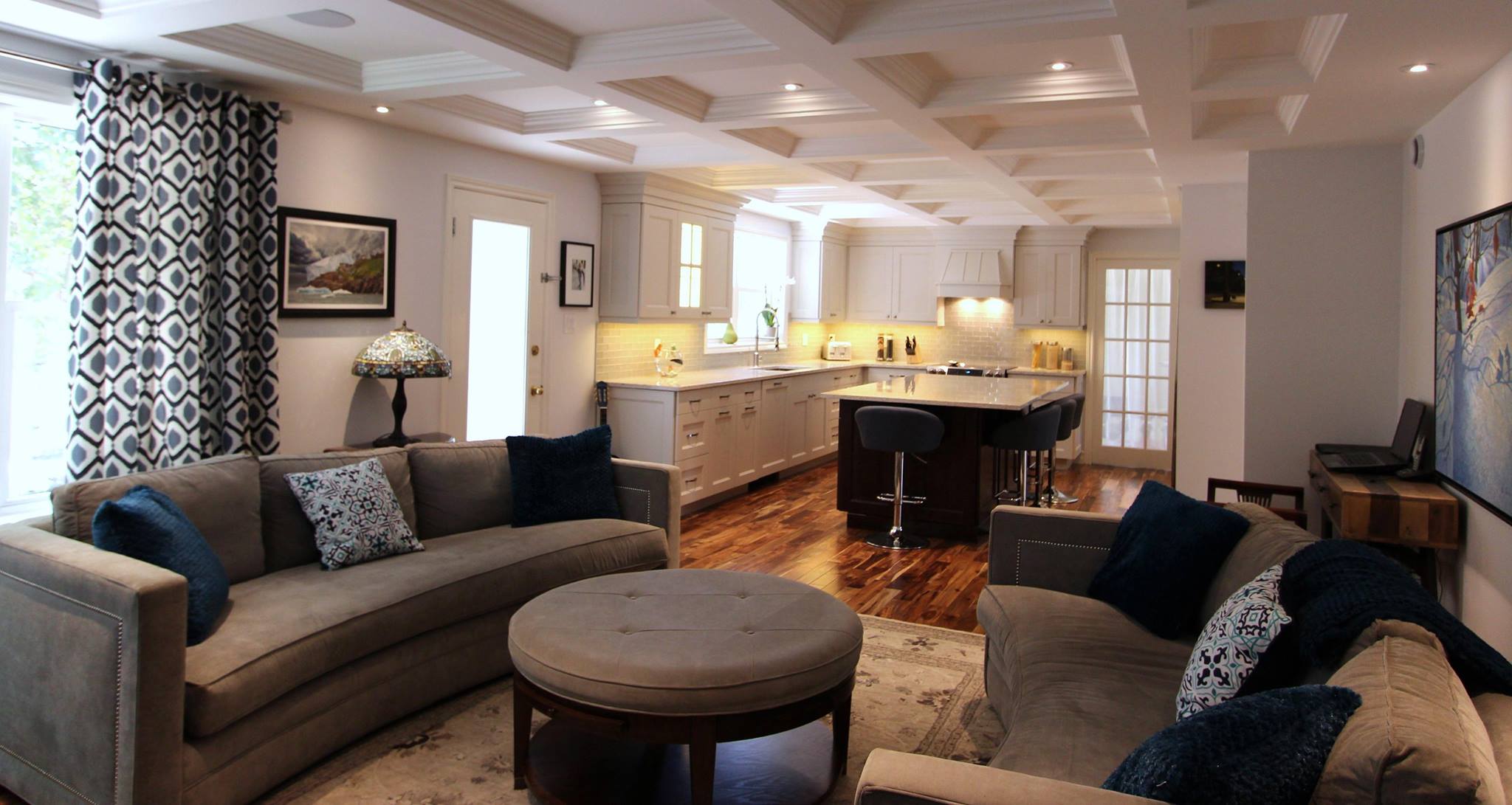 This beautiful home on a quiet street just off Point Pleasant park had fantastic bones. It was however in dire need of an update. The homeowner, a contractor himself, was up to the challenge. The stunning coffered ceiling offered the base for a beautiful palette of softly toned cabinetry. A built in media centre flanking a stunning fireplace ties the attached den into the overall space. Cabinetry supplied by Glenwood Kitchens Ltd. Countertops by Jade Stone Halifax Ltd.
