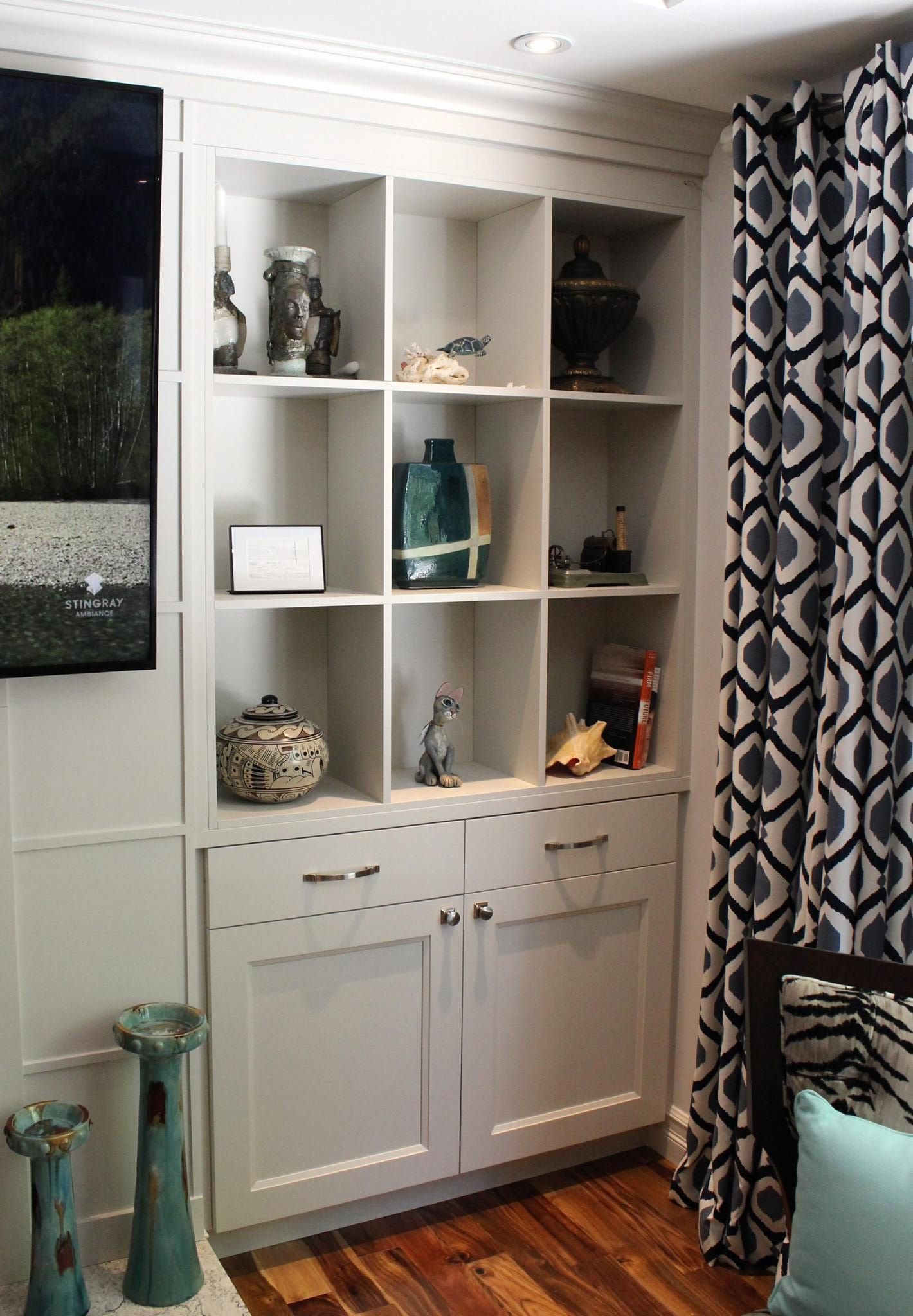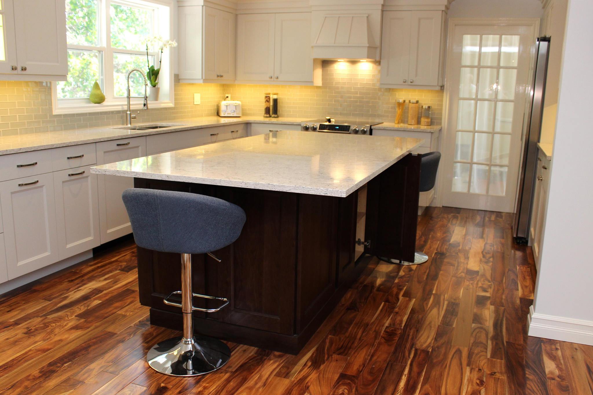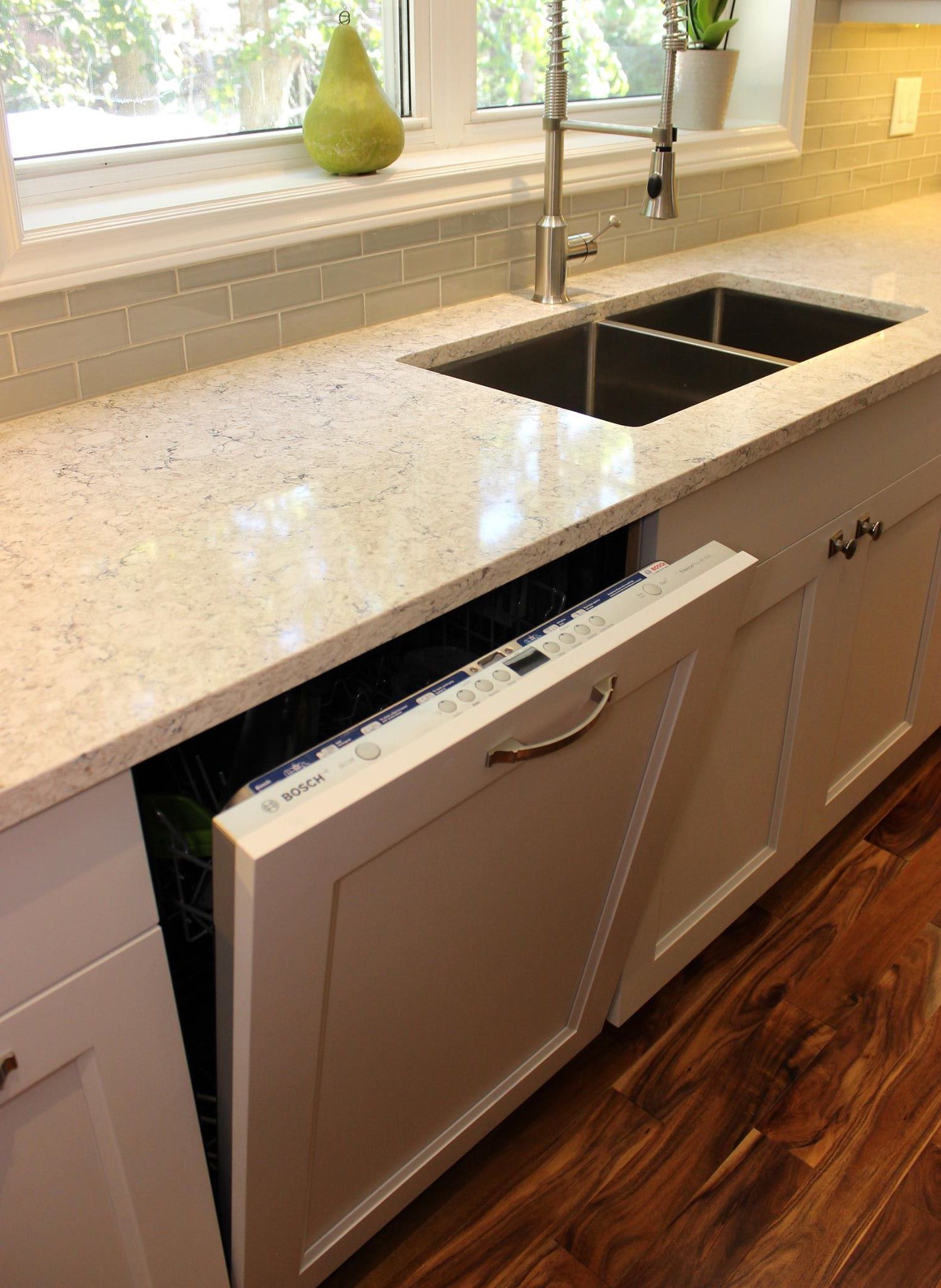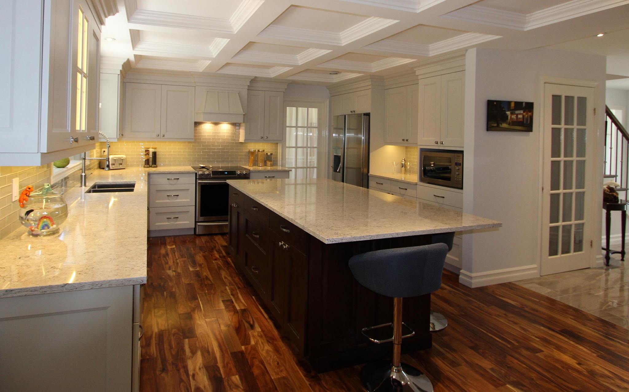 This beautiful home on a quiet street just off Point Pleasant park had fantastic bones. It was however in dire need of an update. The homeowner, a contractor himself, was up to the challenge. The stunning coffered ceiling offered the base for a beautiful palette of softly toned cabinetry. A built in media centre flanking a stunning fireplace ties the attached den into the overall space. Cabinetry supplied by Glenwood Kitchens Ltd. Countertops by Jade Stone Halifax Ltd.